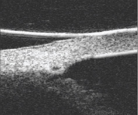 Figure 4. This ultrasound image shows the scleral lake created by expansion of the collagen wick.