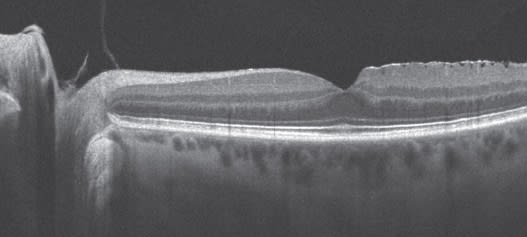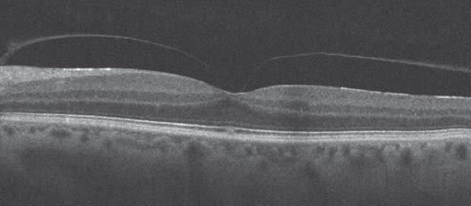 Figure 2. Vitreomacular traction syndrome can be especially difficult to diagnose without SD-OCT.