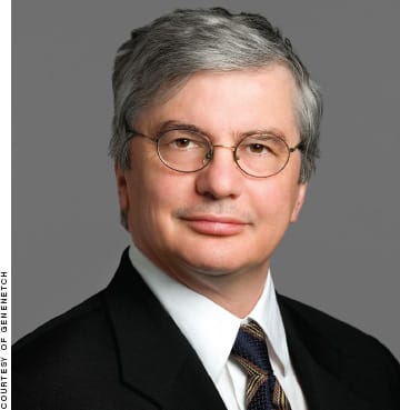 In the years following the failed trial for Roche, a number of companies contacted Drs. Guyer and Adamis to consult about potential therapies for wet AMD. By this time — the mid 1990s — VEGF had already been discovered by a Genentech researcher, Napoleone Ferrara, PhD, and VEGF had been identified as the key target in halting tumor angiogenesis. Dr. Ferrara's discovery, coupled with Genentech's work on the antiangiogenic cancer drug Avastin, gave Genenetch a strong start on its own program to develop an antiangiogenic therapy for wet AMD.