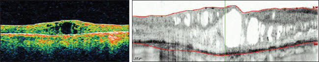Time-domain OCT image (left) and spectral-domain OCT image (right) from the same eye with center-involved DME.