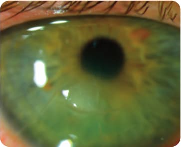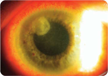 Figure 1. Ulcerative keratitis in association with soft contact lens wear due to Pseudomonas aeruginosa.