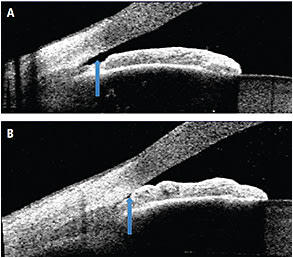 A recent Singapore study that used SD-OCT (Cirrus SD-OCT, Carl Zeiss Meditec, Dublin, Calif.) to identify bleb morphology found SD-OCT identified bleb wall details, but could not image deeper structures such as internal ostium or flap position.16 Also, AS-OCT has been found to aid in determining the position, course and patency of drainage implants.18,19