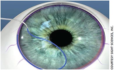 Currently in clinical trials, the iStent inject (Glaukos) and Hydrus Microstent (Ivantis) show much promise. The iStent inject has a different design from its commercially available cousin purporting easier insertion. And, since early reports show a benefit of more than one iStent insertion,7 the iStent inject protocol allowing for the insertion of two stents is believed to offer even more IOP lowering capability. At least one study, while Glaukos-financed, has shown that inject reduced IOP for at least one year without medication.8,9