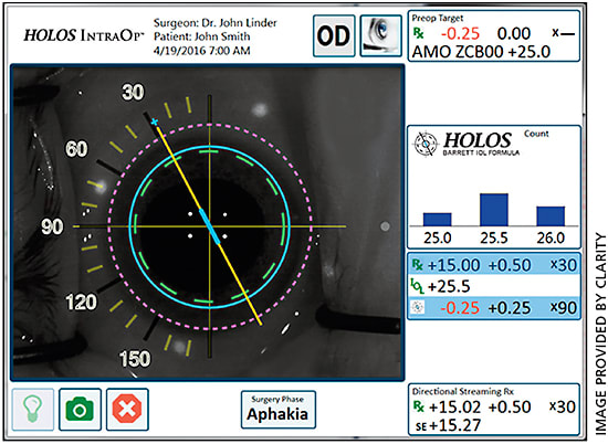 Some of the statistics displayed are “incredibly” precise, down to a hundredth of a diopter, says Dr. Solomon. “There is a lot of information being delivered to the surgeon in real time. You really have to prepare yourself.” Because of that, using the HOLOS involves a learning curve.