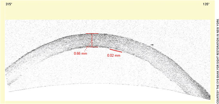 OCT image of donor cornea prepared for DMEK.