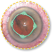 Dr. Scott also finds the ring to be more pliable than similar devices with a low chance of phaco tips tearing the iris, as the I-Ring’s shape matches the eye’s natural anatomy, she says. The positioning holes resting on top of the I-Ring’s frame, above the iris, instead of directly overlapping the eye, also reduce risk of tearing.