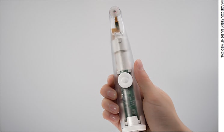 The NuLids System (NuSight Medical), a hand-held device recently approved by the FDA, is an at-home treatment for MGD, analogous to an electric toothbrush, “used at home between deep cleanings and regular visits to your dentist,” according to James Laux, chief commercial officer at NuSight.