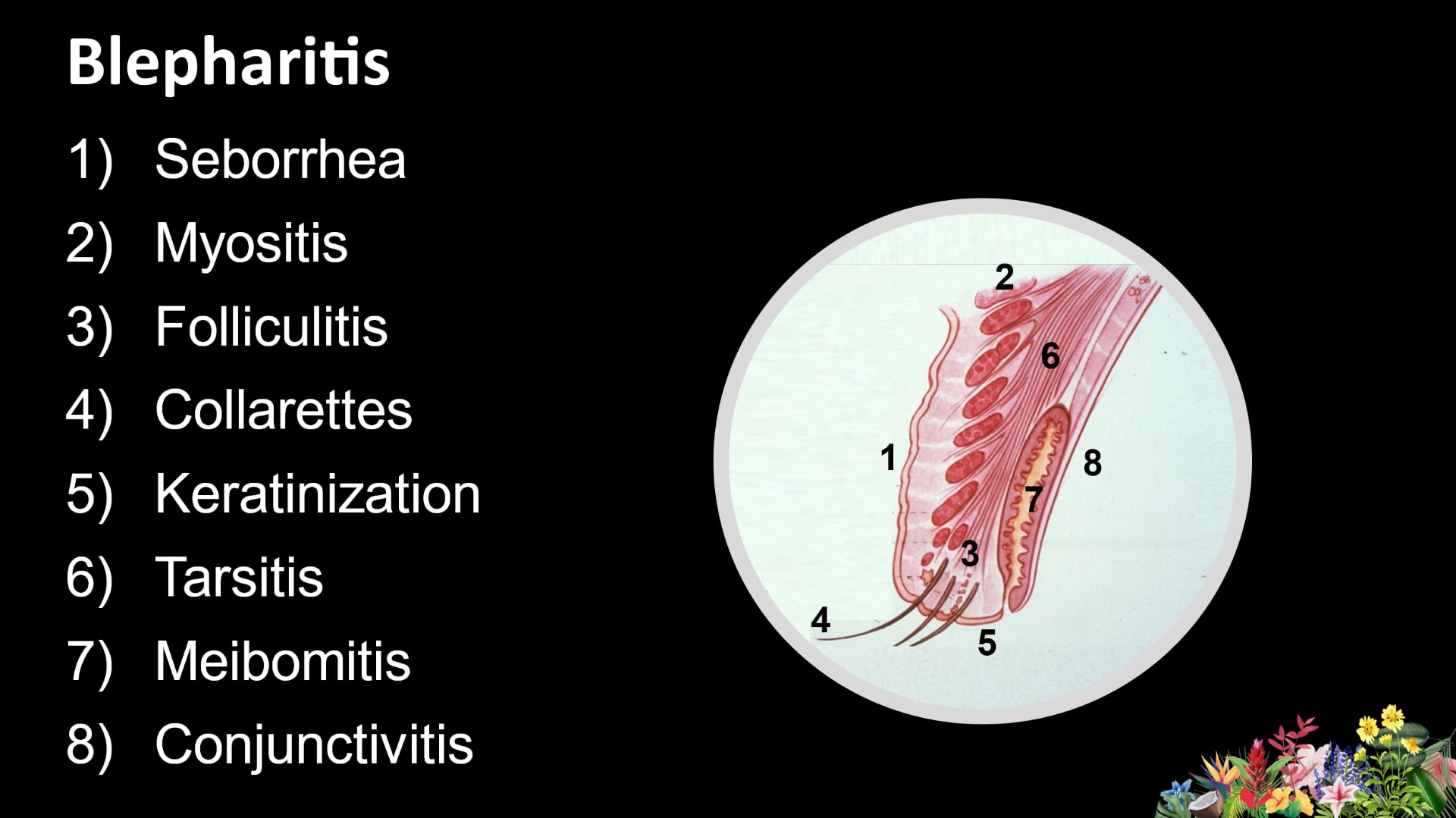Blepharitis is often simplistically parsed into anterior: skin, lashes, and muscle; and posterior: tarsus, meibomian glands and conjunctiva. Although useful, more specific identification of the primary pathology better serves treatment success.