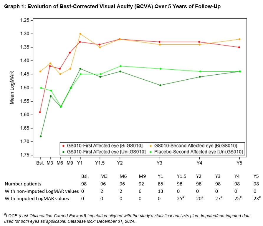 GenSight Biologics has released final results from the REFLECT phase 3 clinical trial, confirming that its gene therapy, Lumevoq (lenadogene nolparvovec), provides sustained visual acuity improvement in patients with Leber Hereditary Optic Neuropathy (LHON) 5 years after a single administration. The study also found that bilateral injections resulted in a greater proportion of patients experiencing meaningful recovery compared to unilateral treatment.