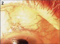 The most important step in the management of a failing bleb is to recognize its presence. Bleb failure is preceded by a gradual increase in IOP and a change in the bleb's appearance. On slit lamp examination, the bleb can appear less diffuse, less elevated or flat or relatively avascular and opalescent. Alternatively, it can also appear very elevated and surrounded by a fibrotic vascular ring. The latter description characterizes the appearance of a Tenon's cyst or encapsulated bleb (Figure 1A and 1B). When evaluating bleb function, the physician must observe the bleb's overall appearance and look for microcysts, which indicate good filtration. These are easier to see with fluorescein stain. It is also important to measure IOP and to evaluate if pressure decreases after digital ocular pressure (DOP) is performed.