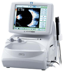 ■ The Nidek US-4000 EchoScan is a comprehensive ultrasound, which includes A/B-scan, biometry and pachymetry all in one compact, lightweight device. High resolution images are achieved through 400 lines of sampling over 60° and displayed on a 1024 x 768 XGA, touch-panel monitor. High-density scanning sectors provide ideal images for the most accurate diagnosis, says Nidek.