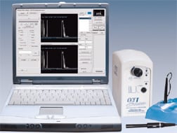■ The DGH Pachette is the exclusive Ocular Hypertension Treatment Study pachymeter. There are over 10,000 DGH pachymeters in use around the world. The DGH 55 Pachmate handheld is the world’s lightest ultra-high quality pachymeter, according to DGH. The Pachmate and the Pachette 3 were designed specifically for glaucoma and LASIK screening. They feature bilateral mode, running average and standard deviation. DGH’s new B-Scan, the Scanmate, is an economical way to perform B-Scans using a USB port on a laptop or PC.