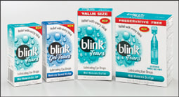 Blink Tears is designed for mild to moderate dry eye with less blurring of vision — dissipating preservative in the eye. Blink Tears Preservative Free for mild to moderate dry eye is delivered in sterile single-use vials for patients who have sensitive eyes and for post-LASIK use. Blink GelTears is for moderate to severe dry eye and contains a more viscous formula specially designed for enhanced comfort. Blink GelTears is recommended for both daytime and nighttime use.