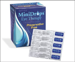 ■ MiniDrops is a preservative free, single-use lubricant to address dry eyes and can be used with or without contact lenses. Compared to other tears, MiniDrops has a medium viscosity that is not too thick or sticky. MiniDrops are individually packaged in single-use vials to prevent cross-contamination of repeated use.