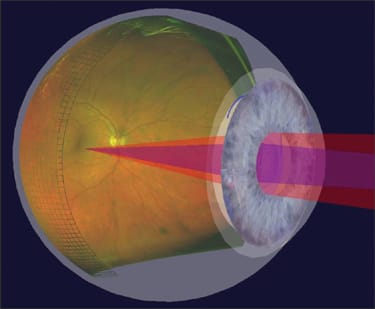 Figure 5. The 3D Wrap modeling capability feature of the Optomap P200C imaging system creates a 3-D model of patients' eyes, enabling doctors to illustrate the details of IOL placement in cataract and refractive surgery candidates. Doctors can simulate the insertion of different types of lenses, while explaining the benefits of monofocal and multifocal IOLs.