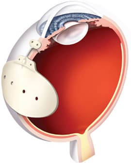 With the Baerveldt and Molteno, once the tube is opened at about four to six weeks, the IOP should remain in an ideal level between 10 and 16 mm Hg. Occasionally, the IOP can rise precipitously at some time following dissolution of the ligature and opening of the tube. This IOP rise can be caused by obstruction of the tube by residual vitreous left behind at the time of the original surgery. If this occurs, a simple vitrectomy can remove the obstruction and allow for proper fluid egress. It is not always possible to visualize vitreous in the lumen of the tube on clinical exam. It is possible to determine if this is the cause of IOP elevation by evaluating the height of the conjunctiva overlying the plate. If there is no elevation of the conjunctiva and adequate time has passed to allow the 7-0 Vicryl tie-off to dissolve, then the only possible cause of IOP elevation is obstruction of the tube. Clinical exam can easily reveal if there is any iris or uveal tissue obstructing the lumen. If no iris or uveal tissue is noted, then the most likely cause of lumen obstruction is retained vitreous. At the time of surgical removal, the remaining vitreous can be more easily identified by injecting triamcinolone into the posterior segment.