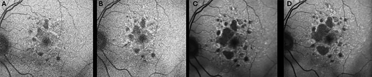 AMD has 3 distinct stages: early, intermediate, and advanced.2 Advanced AMD includes both exudative (or wet) AMD, as well as atrophic AMD, also known as geographic atrophy (GA). GA is characterized by progressive and irreversible atrophy of the choriocapillaris as well as the retinal pigment epithelium and photoreceptors.3 Incident GA typically starts outside the foveal center. However, although a patient’s Snellen acuity might be good, they often report difficulties with contrast sensitivity and with reading, particularly in dim illumination. GA grows by 0.53 to 2.6 mm2/year (median, 1.78 mm2/year which is nearly ¾ of a disk area annually).4 GA currently accounts for approximately 20% of all people who are legally blind in the US, with median time to progression to legal blindness estimated to be 6.2 years.5,6