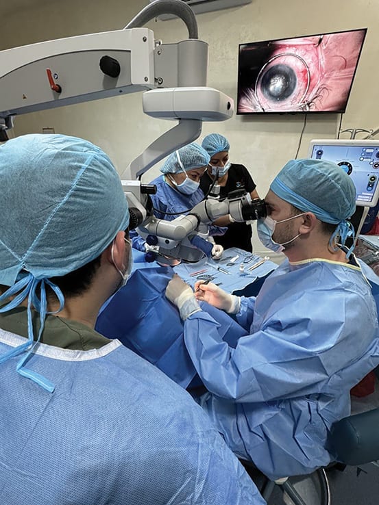 The next morning, the surgical team went to Clinica Quesada “bright and early,” he said. For approximately 12 consecutive hours, they performed transplants as he and Dr. Sila Bal, a corneal specialist in Hawaii, coached the local ophthalmologists on the different techniques for keratoplasty.